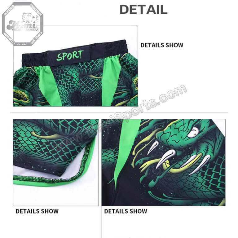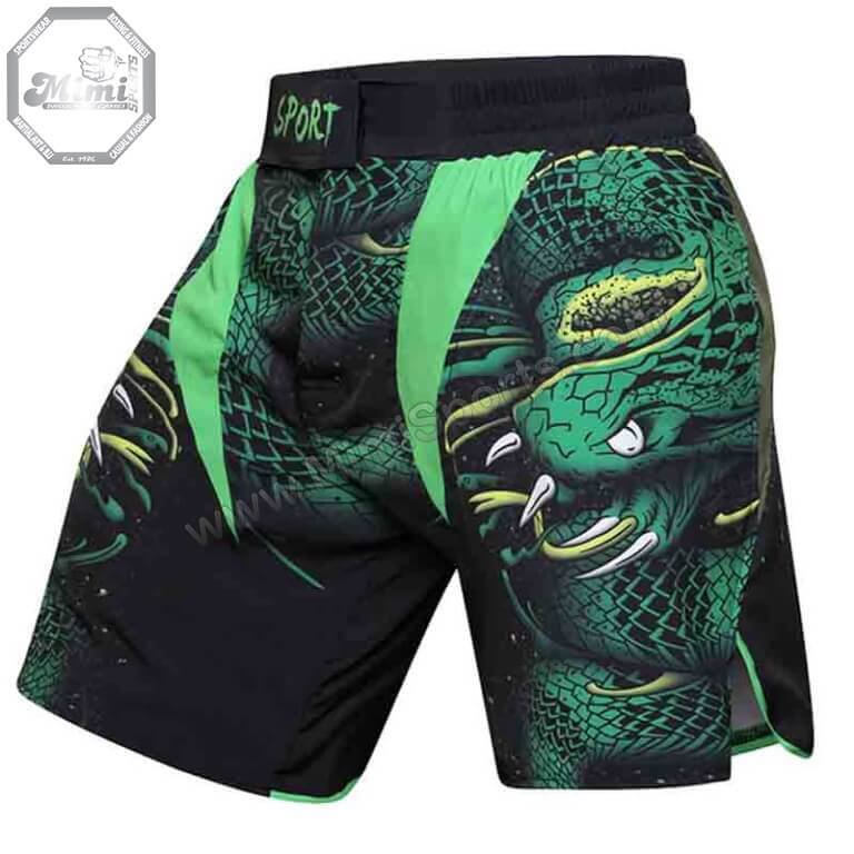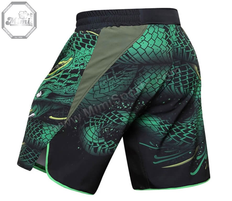 Custom MMA Fight Shorts – Green Viper Design & Reinforced Stitching | Mimi Sports® USA – Philadelphia Edition 🐍🥋