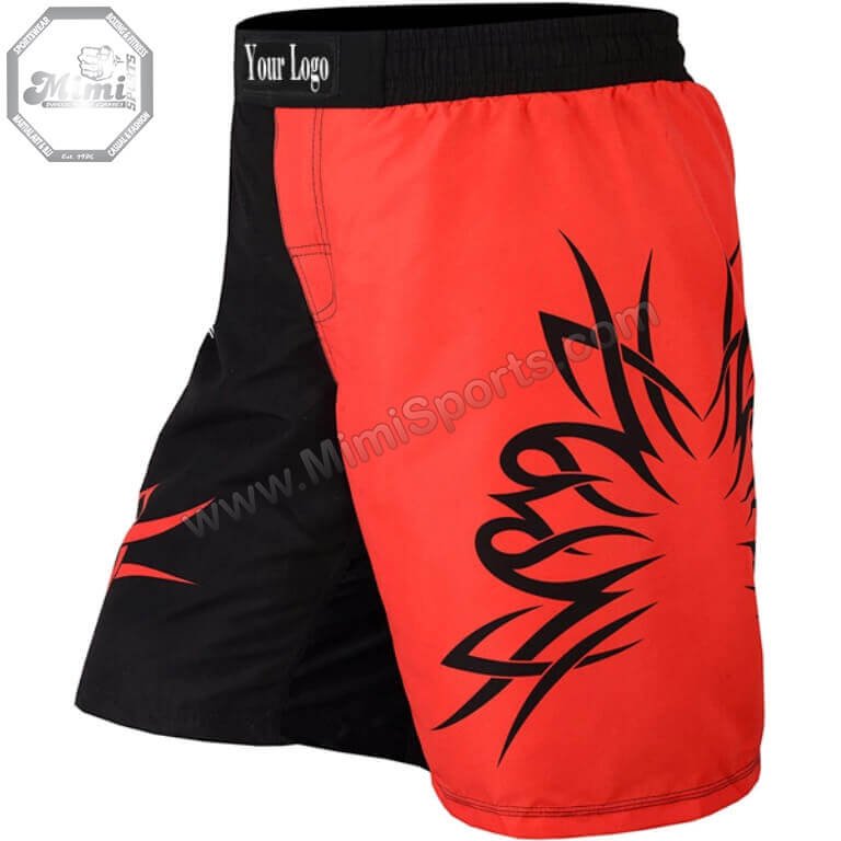 Boost your power, agility, and confidence with MimiSports® Boxing & MMA Training Shorts – Red & Black Split Design | New York Edition.