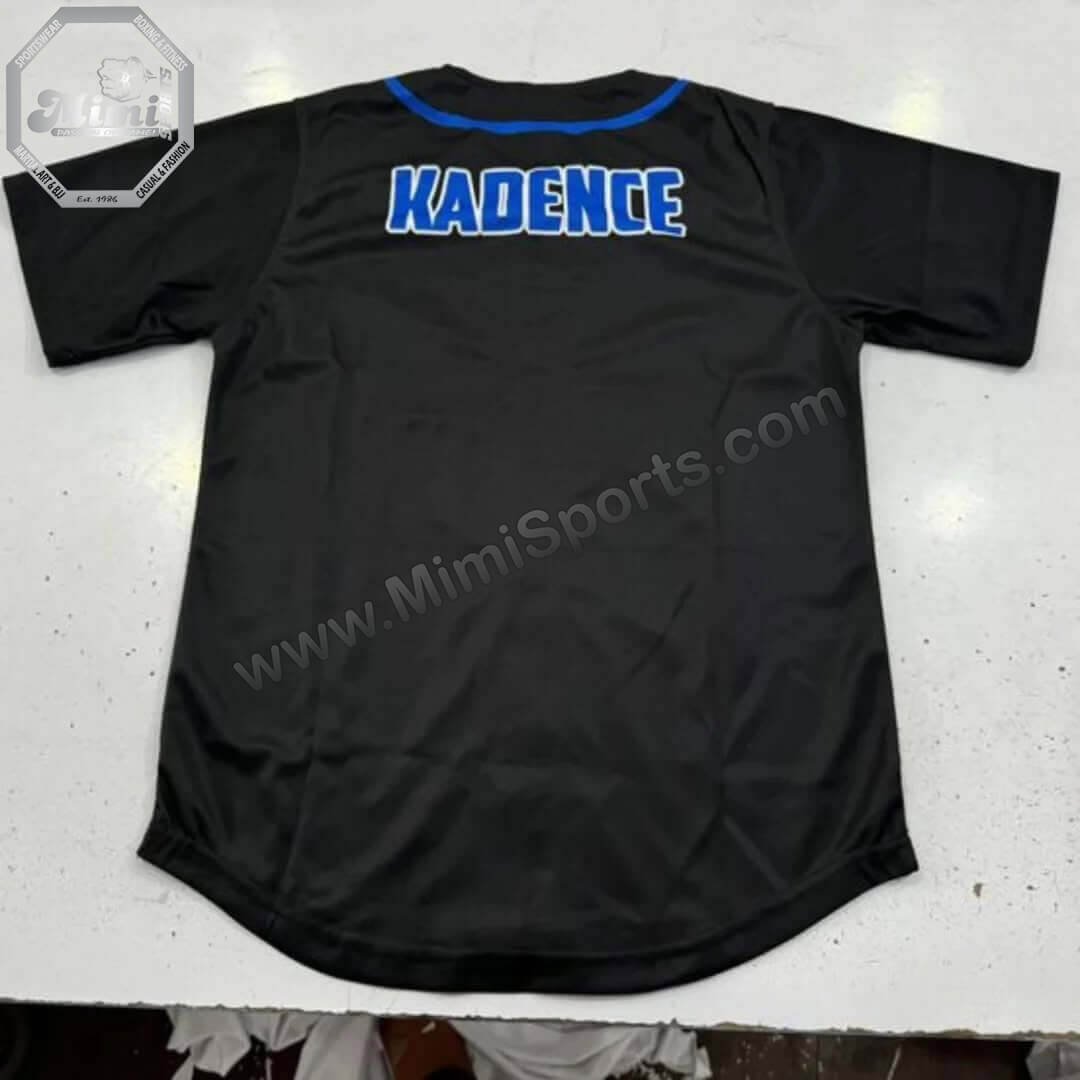 Step onto the field with confidence and style in the Custom Moisture-Wicking Baseball Jersey — designed for athletes who demand performance, personalization, and a bold team identity. Manufactured by MimiSports USA, this jersey features a sleek black base, vibrant blue trim, and a custom back print that makes every player stand out.