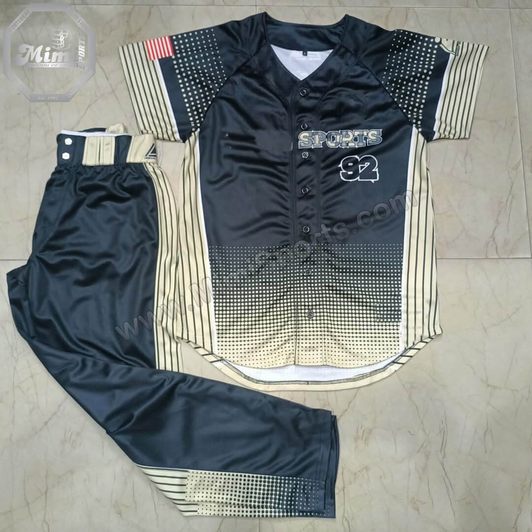 Boost your team’s performance and style with MimiSports USA’s Custom Black & Cream Baseball Uniform – Men’s Teamwear — engineered for comfort, mobility, and professional customization!