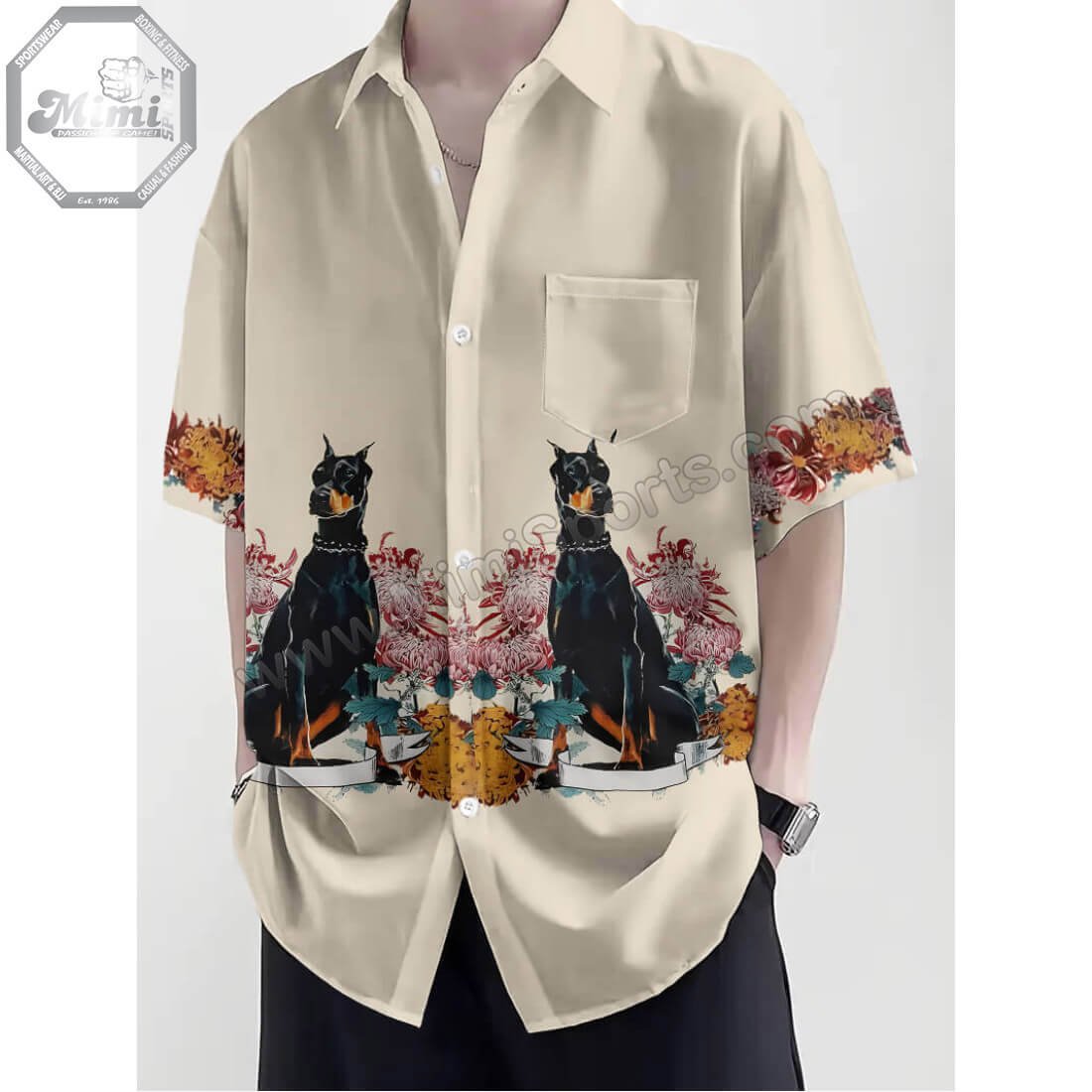 Handmade Streetwear Shirt | Dual Doberman & Botanical Design — MimiSports USA