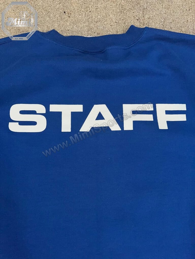 • Back Print: Large white “STAFF” lettering for clear team identification