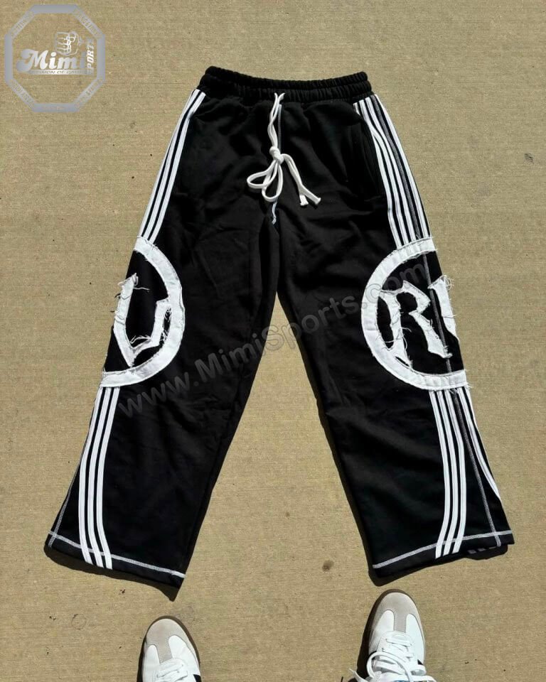 πŸ‘– Custom Made Streetwear Sweatpants – Black Stripe Pants with R & L Patch | MimiSports USA