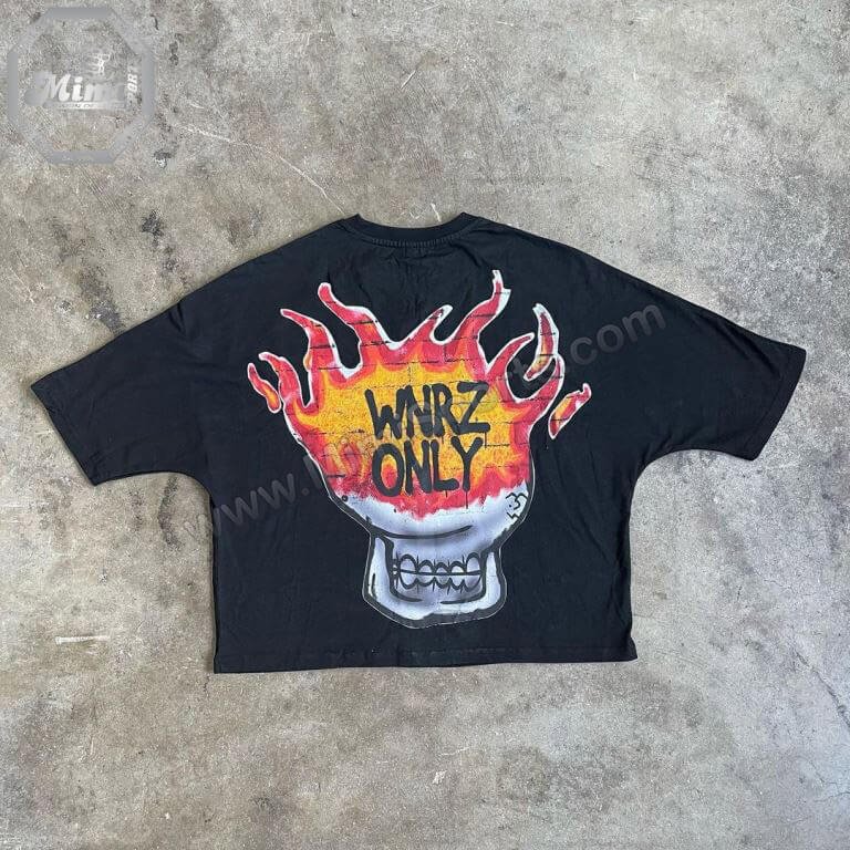 Be the first to review ““WARZ ONLY” Oversized Graphic Tee | Black Flame Skull Print | MimiSports USA”