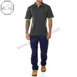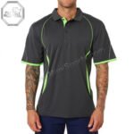 Custom Dark Gray Workwear Polo – Neon Green Piping | MimiSports® Los Angeles