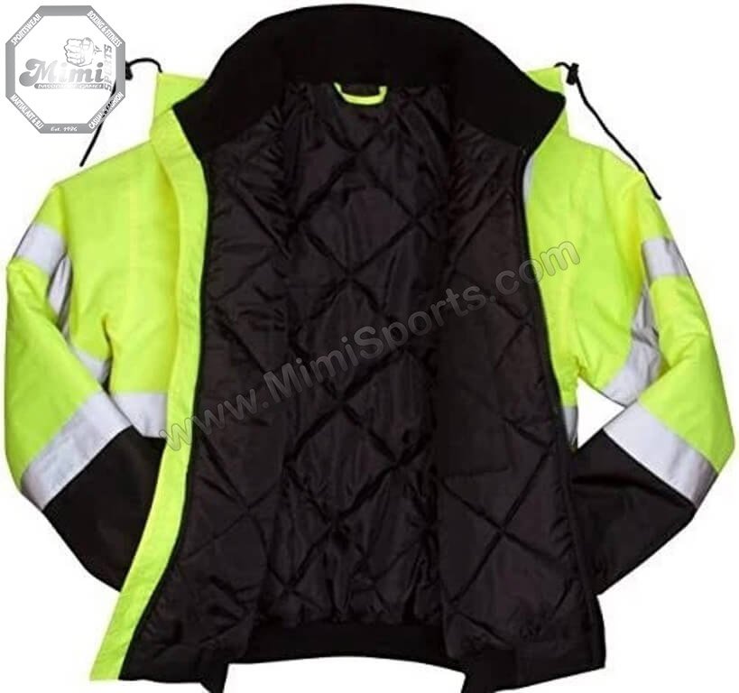 Custom Made MimiSports USA UrbanShield™ Neon Yellow Hooded Safety Jacket – Workwear PPE