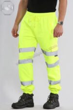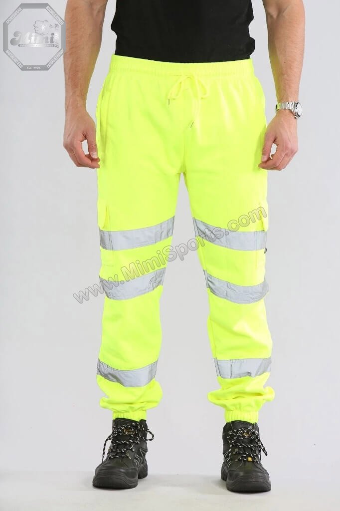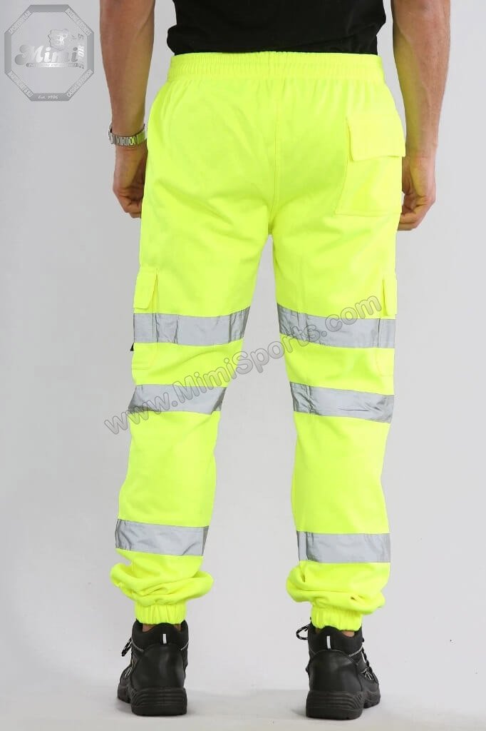 Custom MimiSports® Neon Yellow Work Pants – Dual Reflective Safety Bands USA