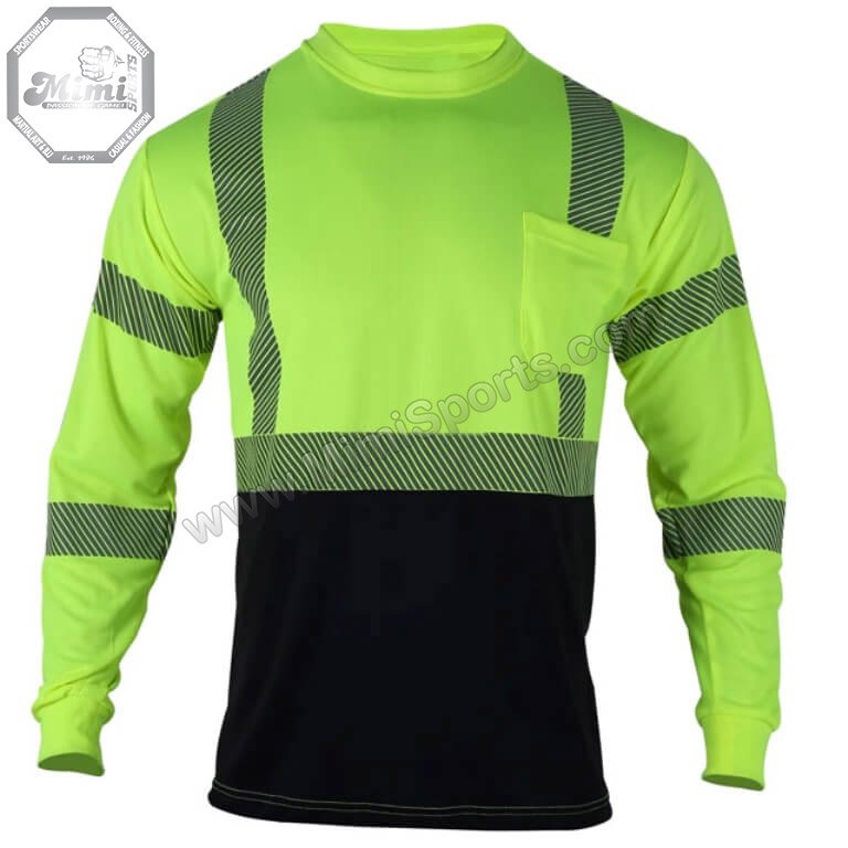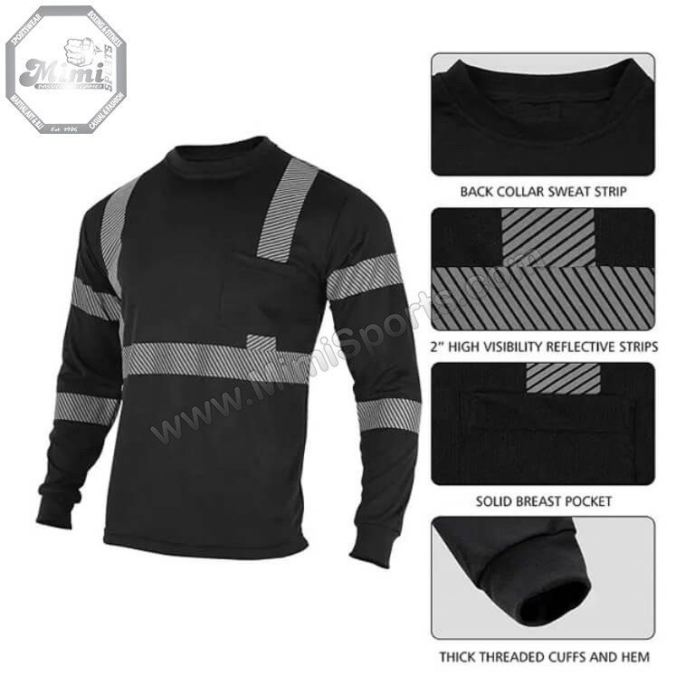 Upgrade your workwear with the Custom Multi-Color Reflective Safety T-Shirt — engineered for maximum visibility, comfort, and durability on any job site. Designed and manufactured by MimiSports USA, this high-performance long-sleeve workwear ensures safety, style, and professional appearance during every shift or outdoor activity.