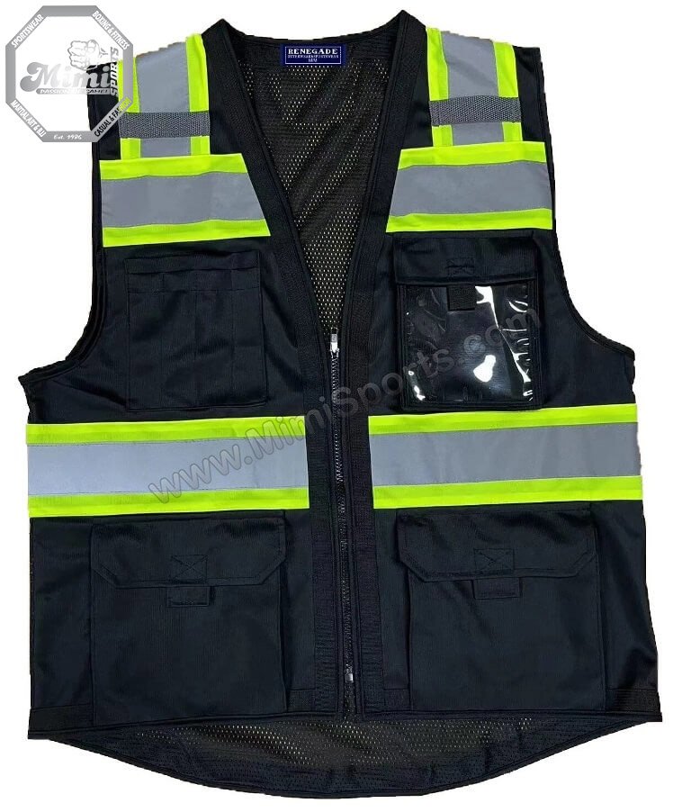 Custom MimiSports® Black Mesh Reflective Vest – High-Visibility Construction Gear | Houston, USA